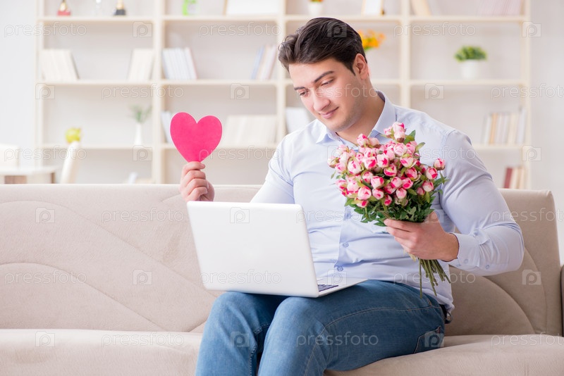 Молодой человек делает предложение о браке через интернет-ноутбук
