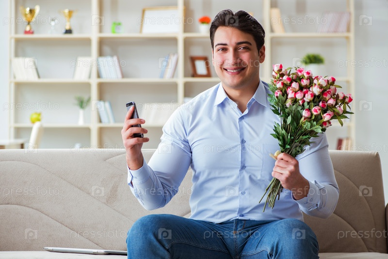 Молодой человек разговаривает со своей возлюбленной по мобильному телефону