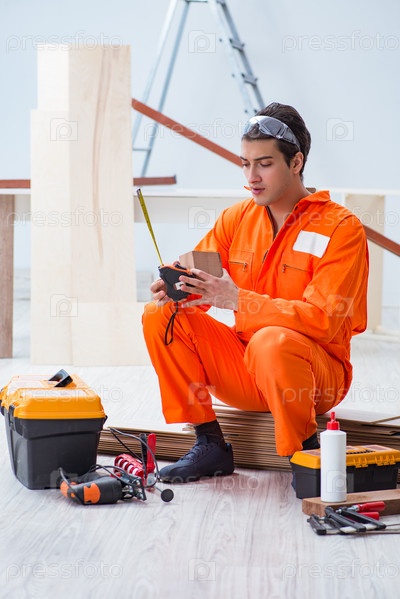 Подрядчик, работающий на ламинированном деревянном полу