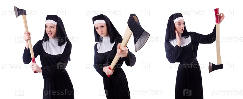 Монахиня с топором, изолированной на белом