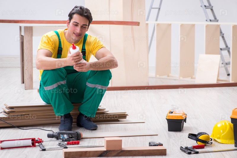 Подрядчик, работающий на ламинированном деревянном полу
