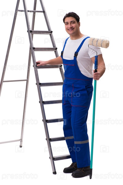 Молодой художник-подрядчик изолирован на белом фоне