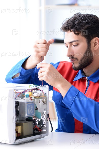 Молодой мастер по ремонту и ремонт микроволновой печи