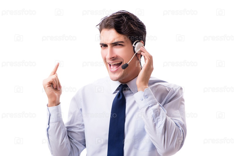 Мужчина с гарнитурой изолирован на белом фоне
