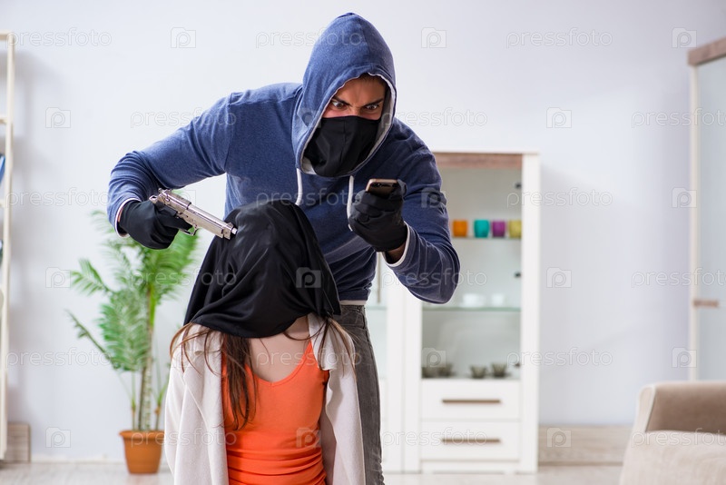 Вооруженный мужчина нападает на молодую женщину в ее доме