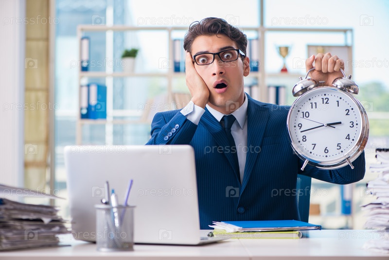 Бизнесмен с гигантскими часами, которые не соблюдают сроки и ошибаются