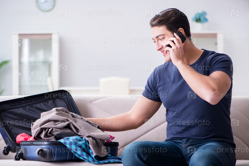 Молодой человек готовит вещи для летних каникул