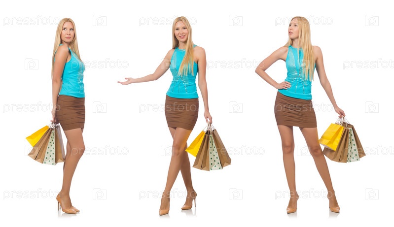 Женщина с сумками для покупок изолирована на белом