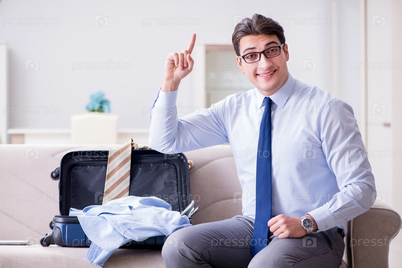 Бизнесмен готовит вещи для деловой поездки