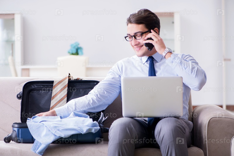 Бизнесмен готовит вещи для деловой поездки