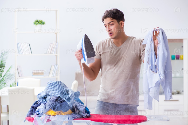 Невнимательный муж сжигает одежду во время глажки
