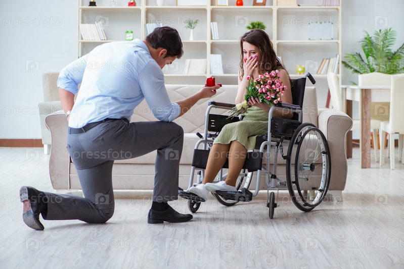 Мужчина делает предложение о браке женщине-инвалиду на инвалидном кресле