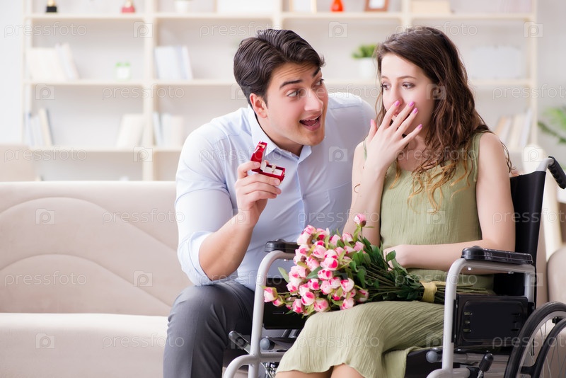 Мужчина делает предложение о браке женщине-инвалиду на инвалидном кресле