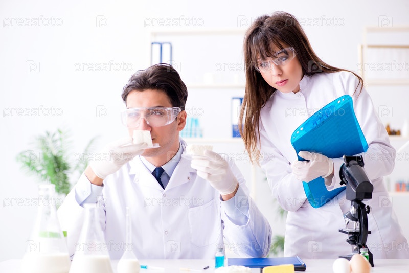 Два лабораторных врача тестируют продукты питания