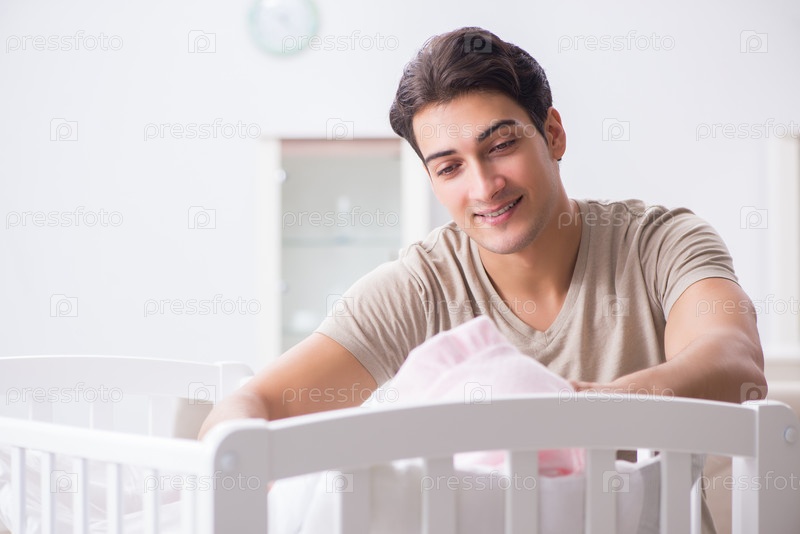 Молодой отец наслаждается временем с новорожденным ребенком дома