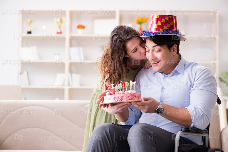Молодая семья празднует день рождения с инвалидом