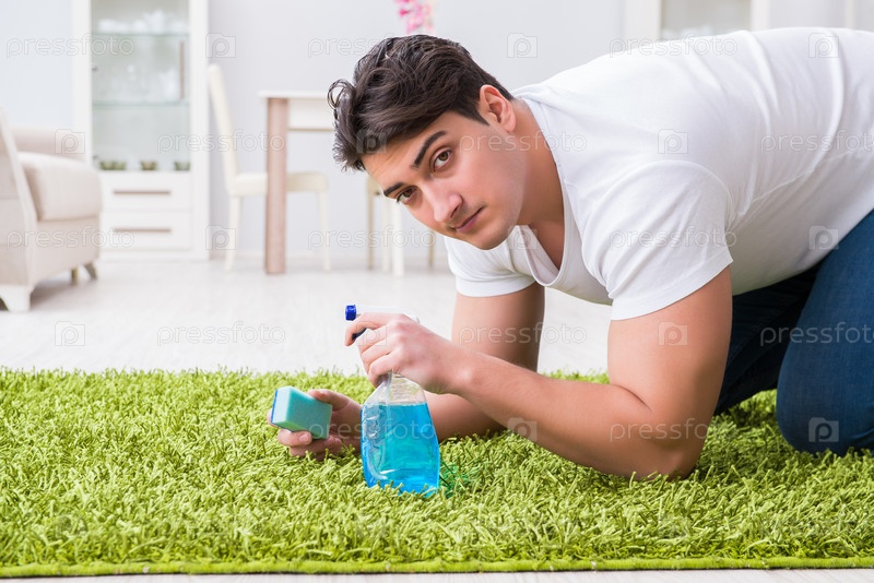 Молодой мужчина-мужчины убирают пол дома