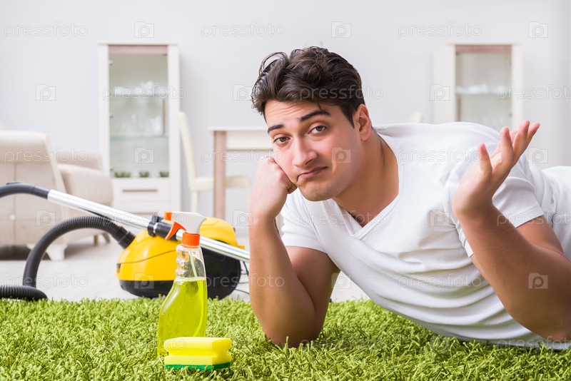 Молодой мужчина-мужчины убирают пол дома