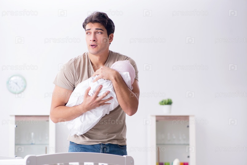 Молодой отец наслаждается временем с новорожденным ребенком дома