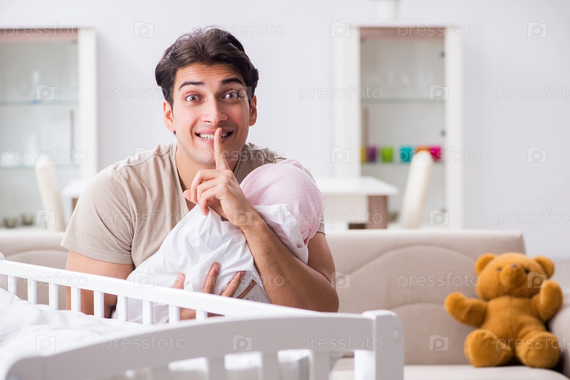 Молодой отец наслаждается временем с новорожденным ребенком дома
