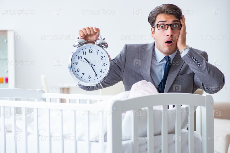 Молодой бизнесмен пытается работать из дома, заботясь о новорожденном ребенке