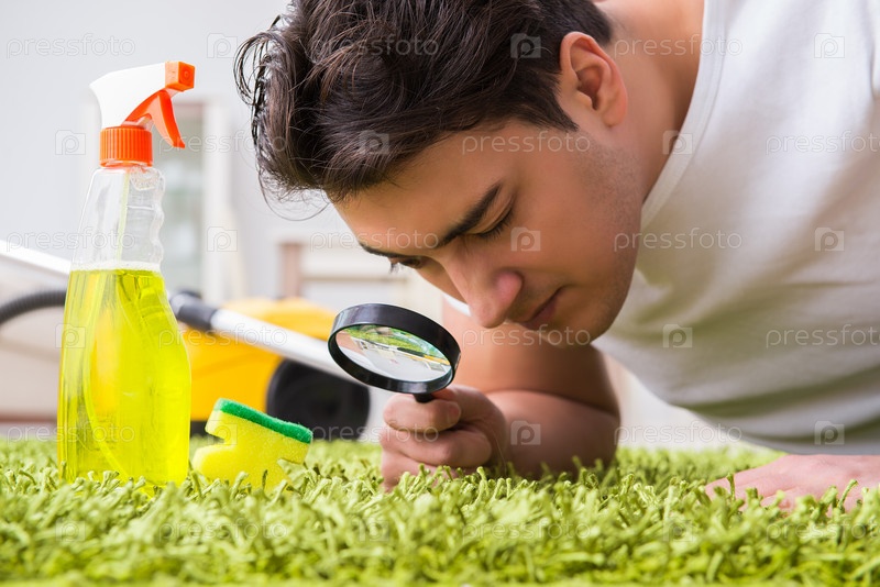 Молодой мужчина-мужчины убирают пол дома