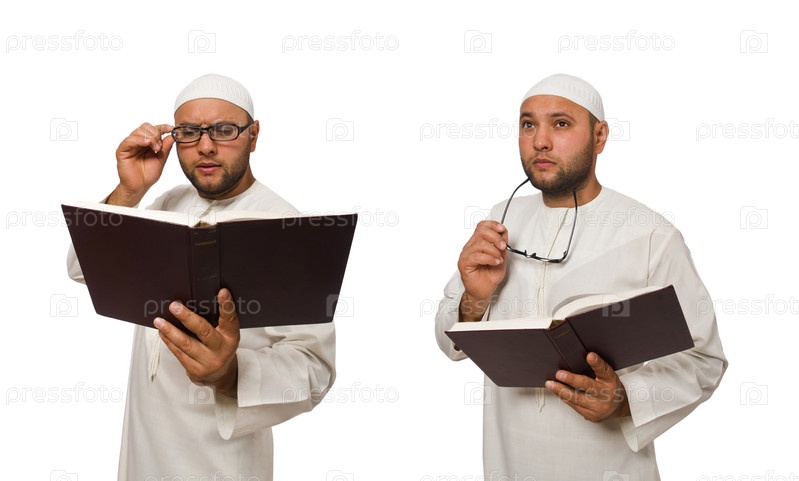Концепция с арабским человеком, изолированным на белом
