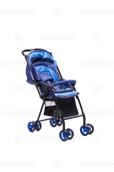 Синяя коляска изолирована на белом фоне