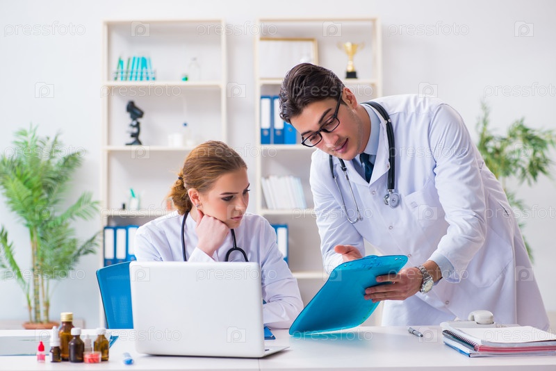 Врач и женщина обсуждают в больнице мужчину и женщину