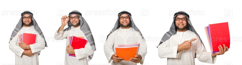 Концепция с арабским человеком, изолированным на белом