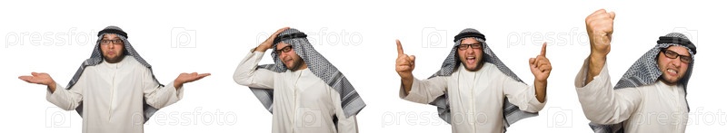Концепция с арабским человеком, изолированным на белом