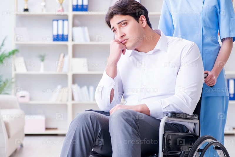 Пациент-инвалид на инвалидной коляске, посещающий врача для регулярного осмотра