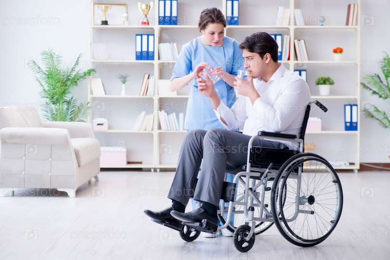Пациент-инвалид на инвалидной коляске, посещающий врача для регулярного осмотра