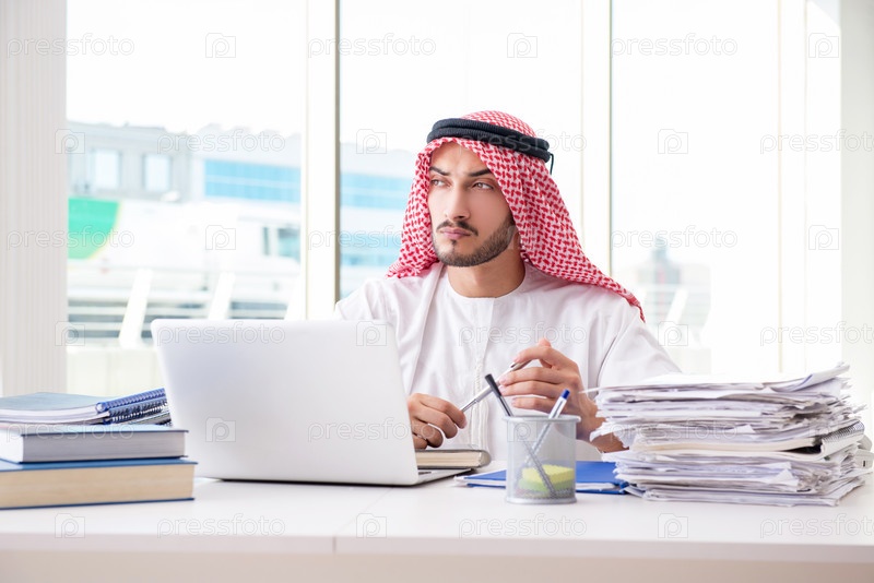 Арабский бизнесмен, работающий в офисе