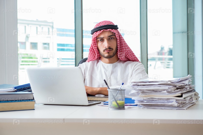 Арабский бизнесмен, работающий в офисе