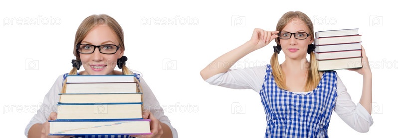 Забавный студент со стопкой книг