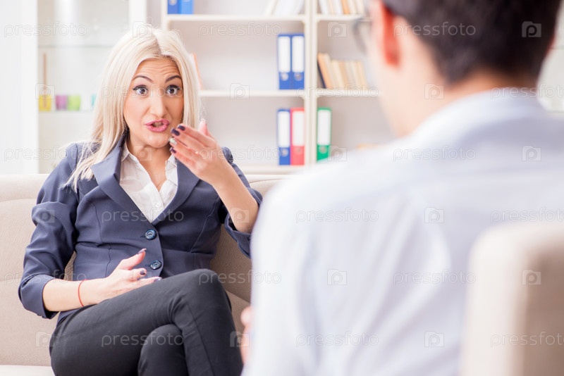 Молодая женщина посещает психиатра мужчина врач для консультации