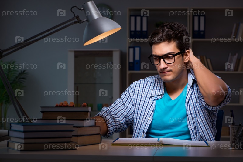 Студент готовится к экзаменам поздно вечером дома
