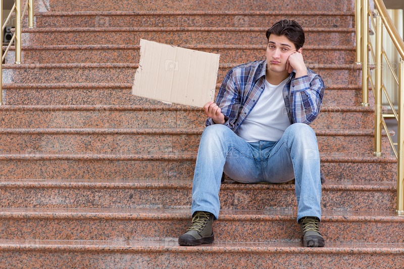 Молодой человек просит денег на улице