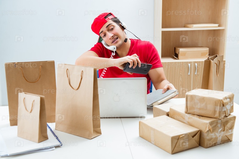 Работник колл-центра в центре распределения посылок в почтовом отделении