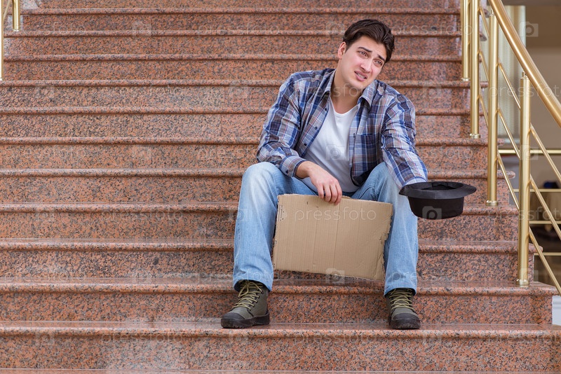 Молодой человек просит денег на улице