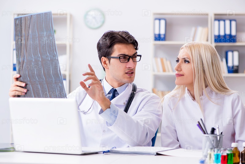 Два врача изучают рентгеновские снимки пациента для постановки диагноза