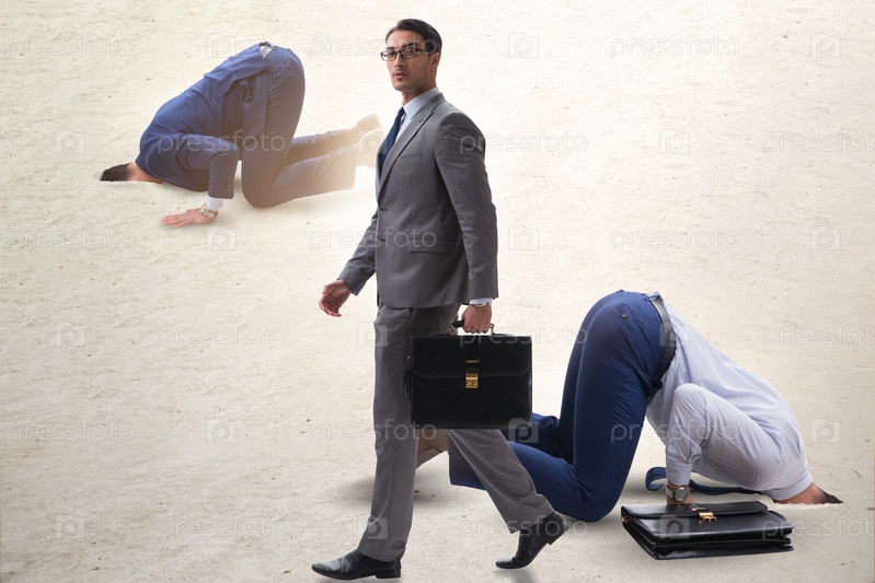 Бизнесмен прячет голову в песок, спасаясь от проблем