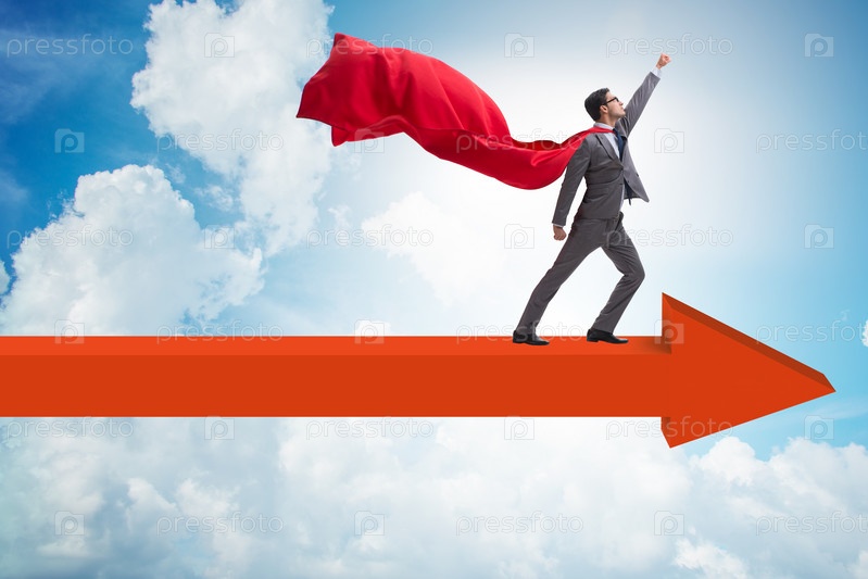 Бизнесмен-супергерой, стоящий на стреле