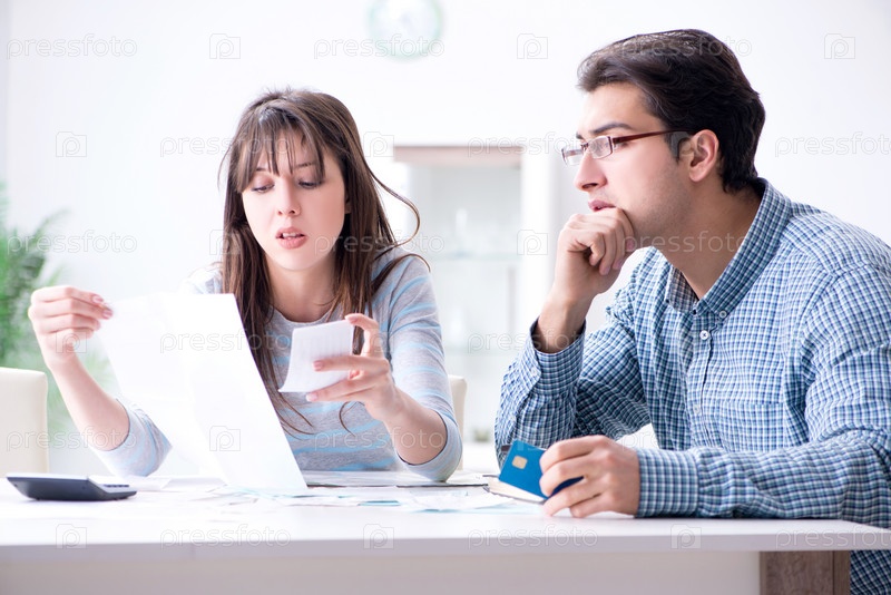 Молодая пара смотрит на документы по семейным финансам