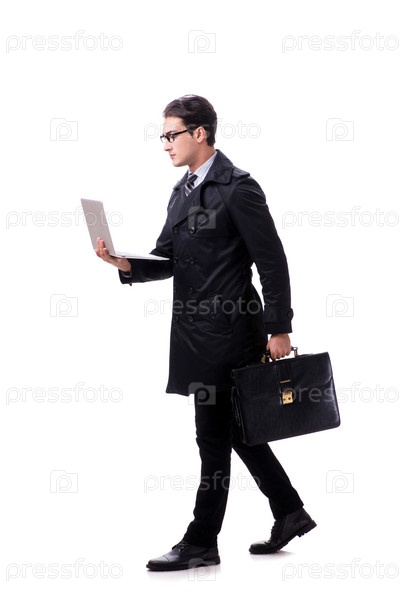 Молодой бизнесмен с ноутбуком, изолированным на белом фоне