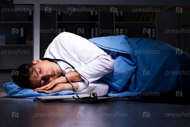 Врач работает в ночной смене в больнице после долгих часов