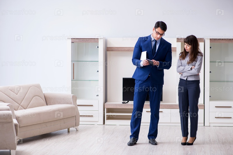 Агент по недвижимости показывает владельцу новую квартиру