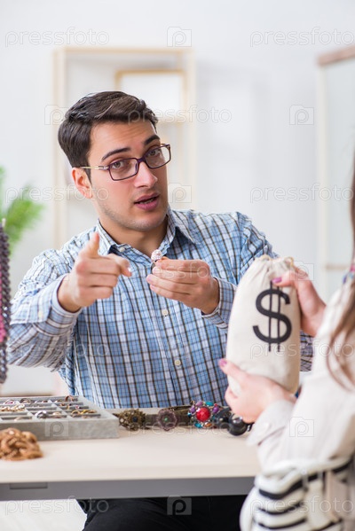 Женщина, посещающая ювелира для оценки драгоценностей