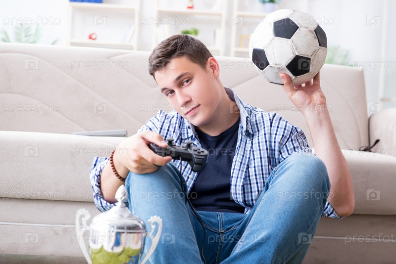 Молодой человек играет в компьютерные игры дома